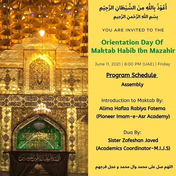 Like Habib Ibn Mazahir supported the Imam of his time, we pray that each student of Maktab Habib Ibn Mazahir become the companion of Imam-e-Zamana (aj).